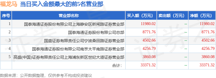 从龙虎榜公布的当日买卖数据来看,上海超短帮、宁波桑田路、作手新一等知名游资榜上有名。(知名游资上海超短帮一般指国泰海通证券股份有限公司上海静安区新闸路证券营业部席位、知名游资宁波桑田路一般指国盛证券有限责任公司宁波桑田路证券营业部席位、知名游资作手新一一般指国泰海通证券股份有限公司南京太平南路证券营业部席位,根据市场资料整理,仅供参考)