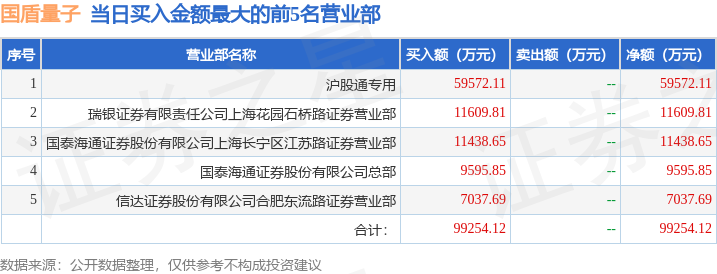 证券之星消息,沪深交易所2025年10月30日公布的交易公开信息显示,国盾量子(688027)因有价格涨跌幅限制的日收盘价格涨幅达到15%的前五只证券,有价格涨跌幅限制的连续3个交易日内收盘价格涨幅偏离值累计达到30%的证券登上龙虎榜。此次是近5个交易日内第1次上榜。