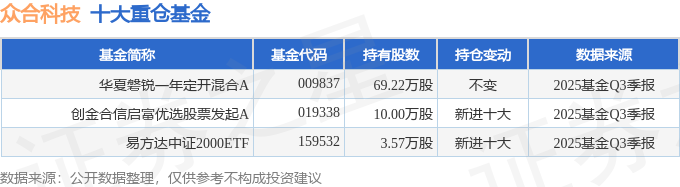 持有众合科技最多的基金为华夏磐锐一年定开混合A,目前规模为1.37亿元,最新净值1.7735(10月30日),较上一交易日下跌0.72%,近一年上涨49.0%。该基金现任基金经理为张城源。