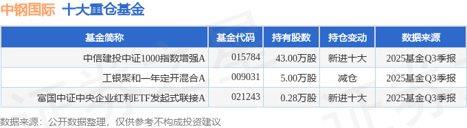持有中钢国际最多的基金为中信建投中证1000指数增强A,目前规模为2.36亿元,最新净值1.3616(10月30日),较上一交易日下跌0.97%,近一年上涨36.49%。该基金现任基金经理为王鹏。