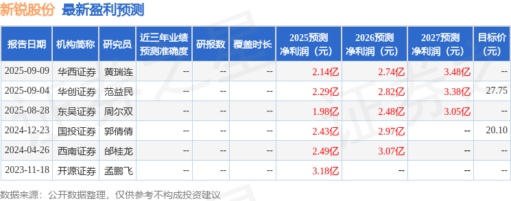 新锐股份2025年三季报显示,前三季度公司主营收入17.89亿元,同比上升32.11%;归母净利润1.65亿元,同比上升22.68%;扣非净利润1.54亿元,同比上升35.9%;其中2025年第三季度,公司单季度主营收入6.48亿元,同比上升38.02%;单季度归母净利润6455.75万元,同比上升75.4%;单季度扣非净利润6024.72万元,同比上升94.83%;负债率45.63%,投资收益1497.52万元,财务费用1709.76万元,毛利率32.37%。