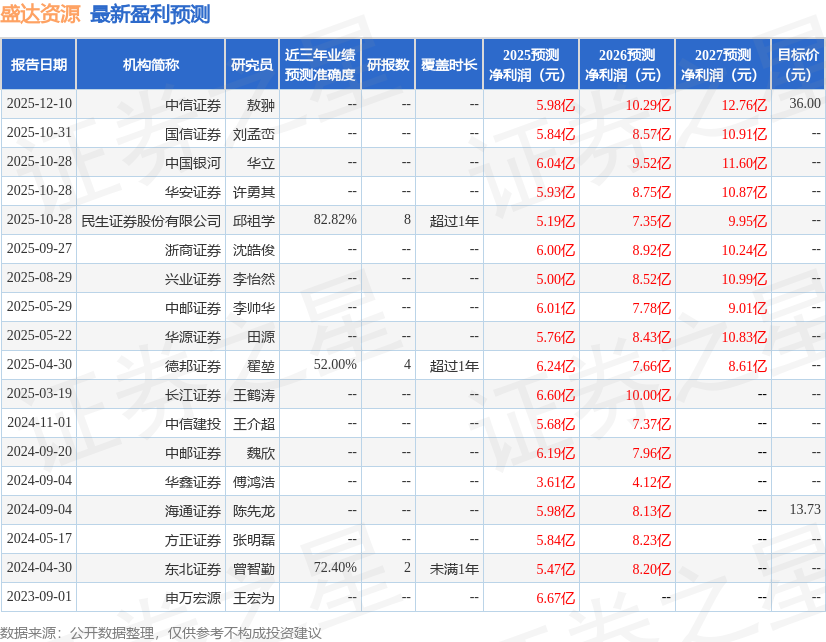 以下是详细的盈利预测信息:
