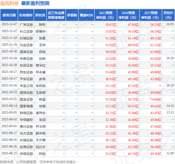 以下是详细的盈利预测信息: