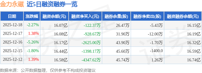 金力永磁融资融券信息显示,融资方面,当日融资买入7143.12万元,融资偿还7265.48万元,融资净偿还122.37万元。融券方面,融券卖出8900.0股,融券偿还6.32万股,融券余量26.47万股,融券余额854.88万元。融资融券余额16.15亿元。